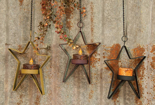 Hanging Whimsical Star Timer Tealight Holder, 3 Assorted